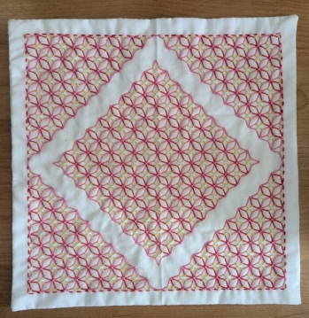 刺し子ふきんです変わり紫陽花糸の色指定を、間違えて縫ってしまった部分があります。糸の残り具合を見て、...
