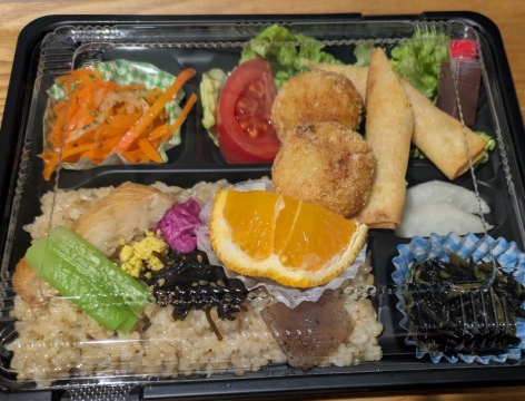 コロハル弁当(コロッケ、春巻き)先日、遠方から友人が来るのに合わせて、予約したベジのお弁当♪・お店で食...