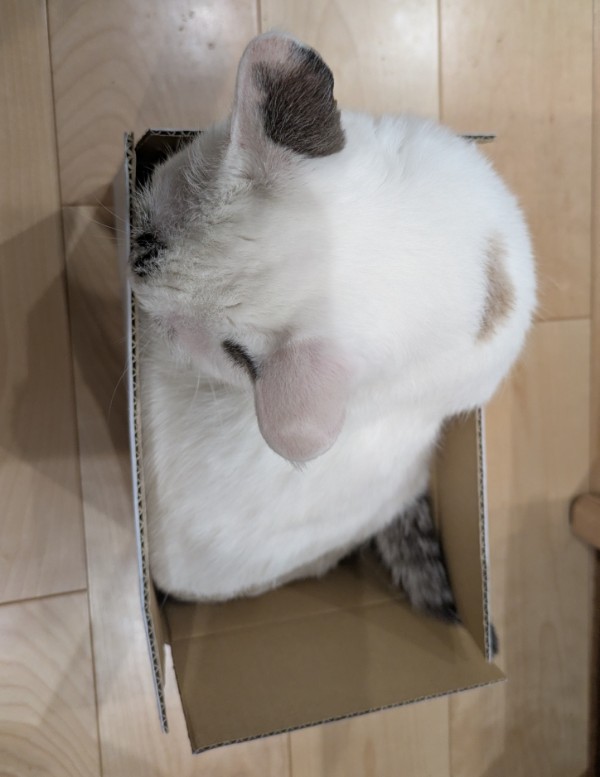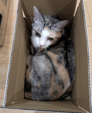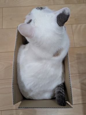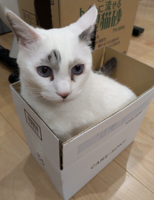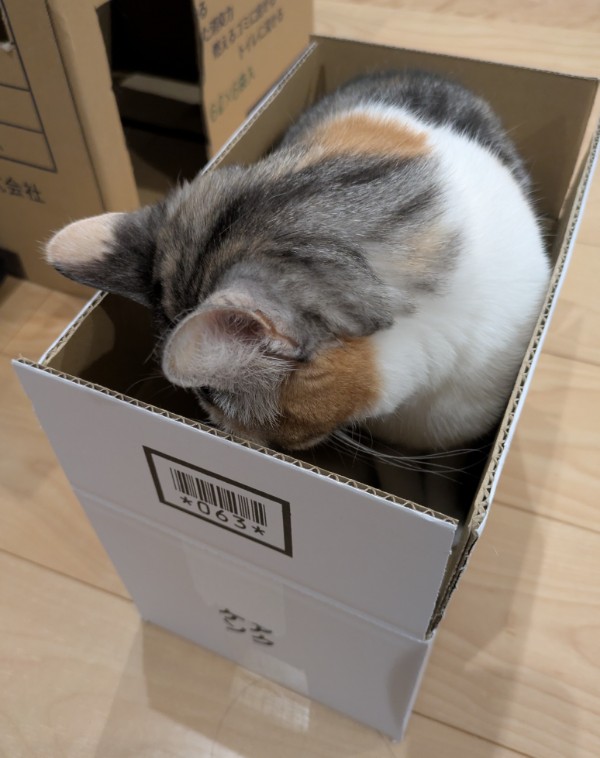あさひが試しているのは、小さな段ボール箱