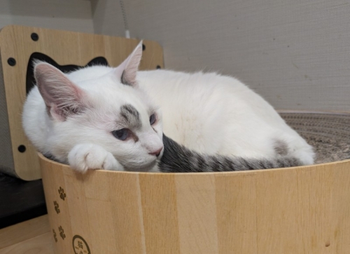 (画像は前足に顔をのせるあさひ)
