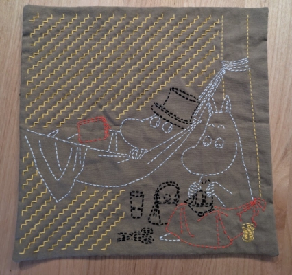 ムーミンパパとママデザインの刺し子……デザインも色合いも新鮮です。