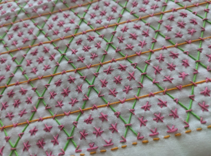 (オレンジと黄緑色の糸の部分はくぐり刺し)